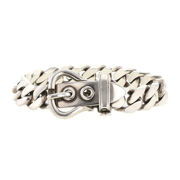 Bellissimo bracciale Hermès Boucle Sellier modello medio in argento, composto da una bellissima maglia grumetta mobile, ornato al centro da una elegante fibbia per cintura apribile.