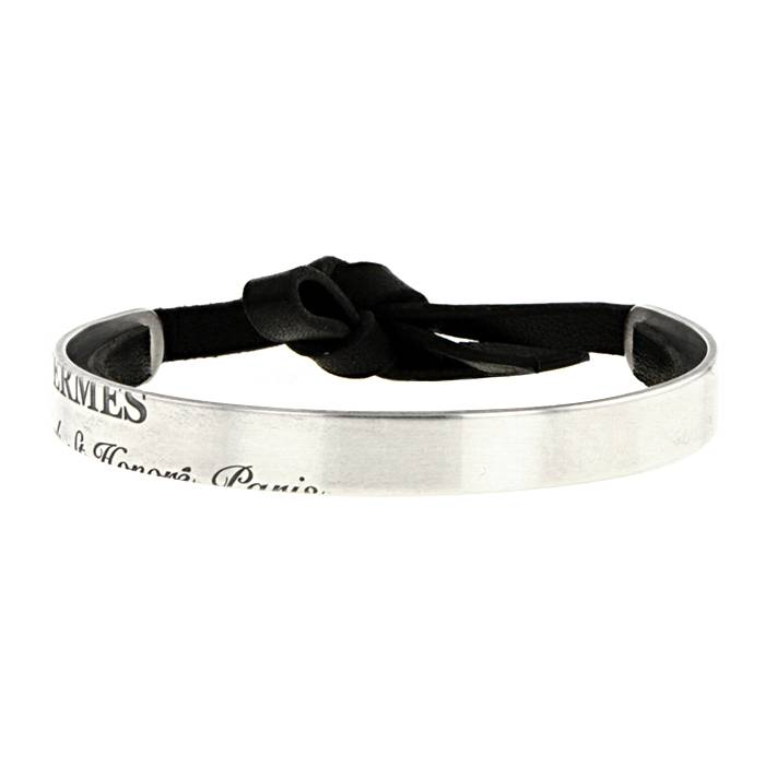 Bracciale a semicerchio Hermes in argento e pelle Ref Collector Square: 33 54 20