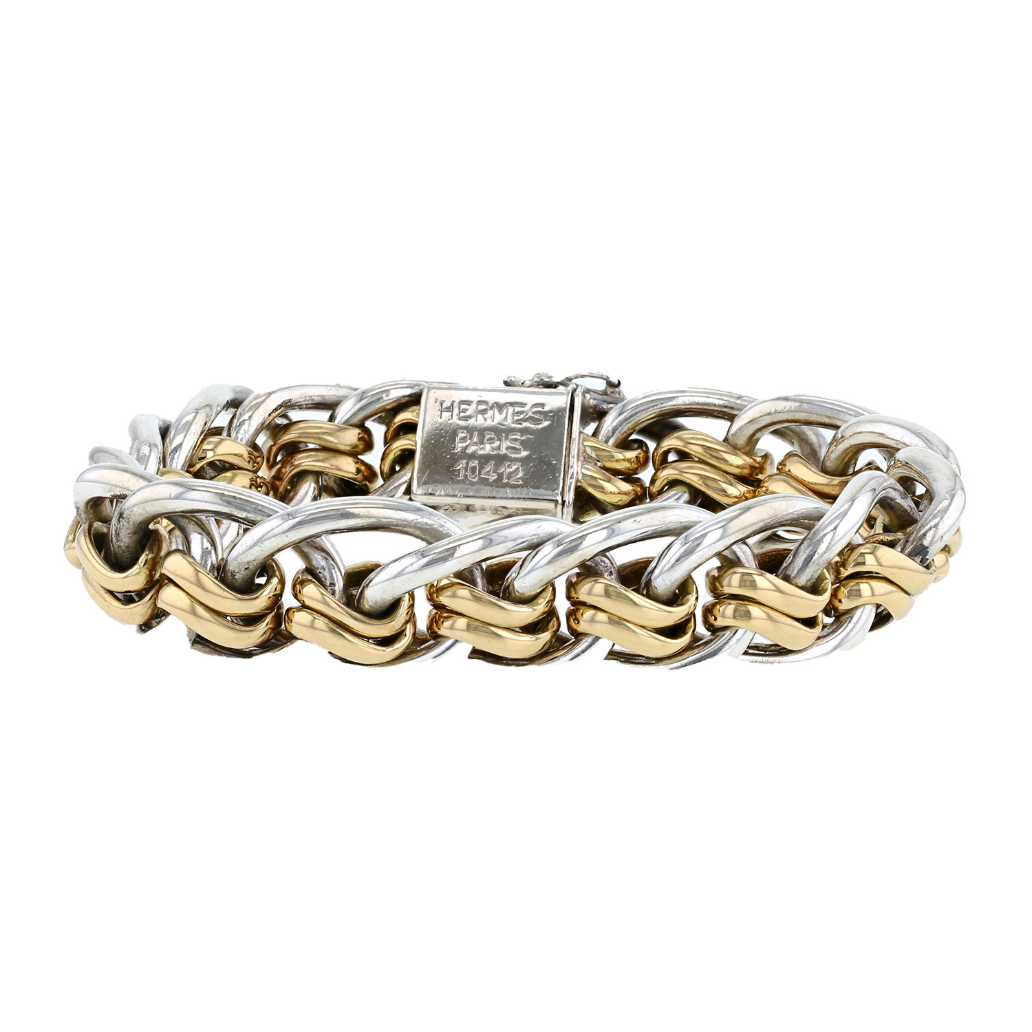 Bracciale Hermès in argento e oro giallo, composto da una successione di maglie geometriche in argento, in oro giallo.