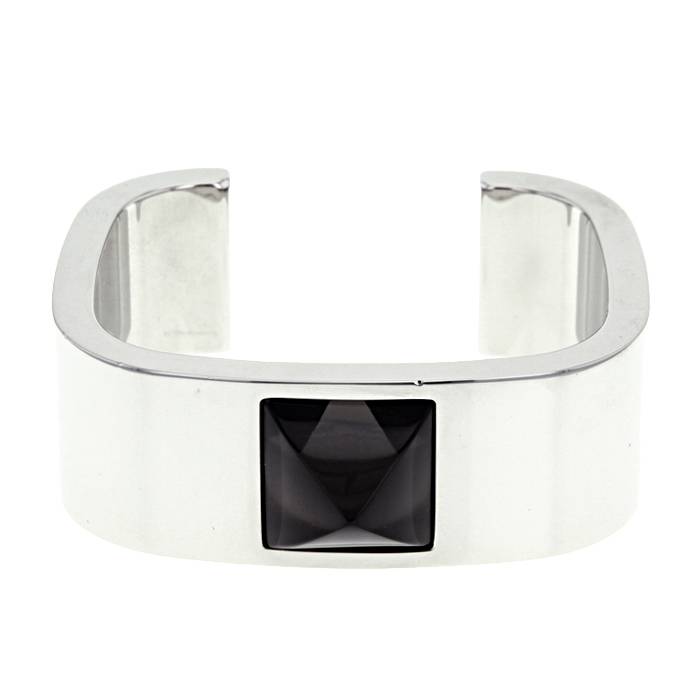Bracciale rigido aperto Hermes Circé modello medio in palladio e cristallo Saint Louis Ref Collector Square: 32 46 95