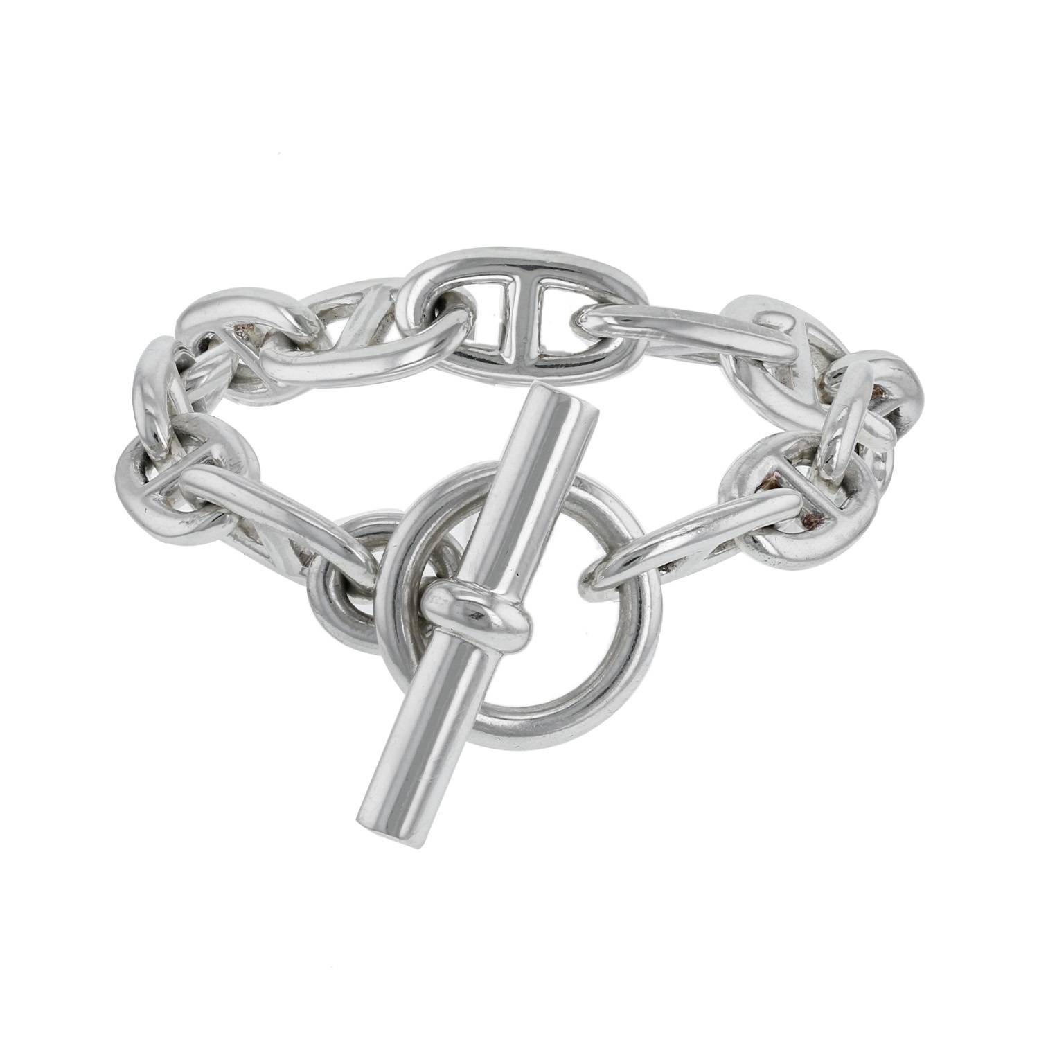 Intramontabile bracciale Hermès Chaine d'Ancre modello grande in argento, composto da una successione di eleganti maglie ovali traforate in argento.