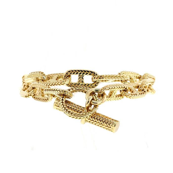 Bellissimo bracciale Hermès Chaîne D'ancre Vendôme in oro giallo, composto da una successione di maglie a catena d'ancora intrecciate.