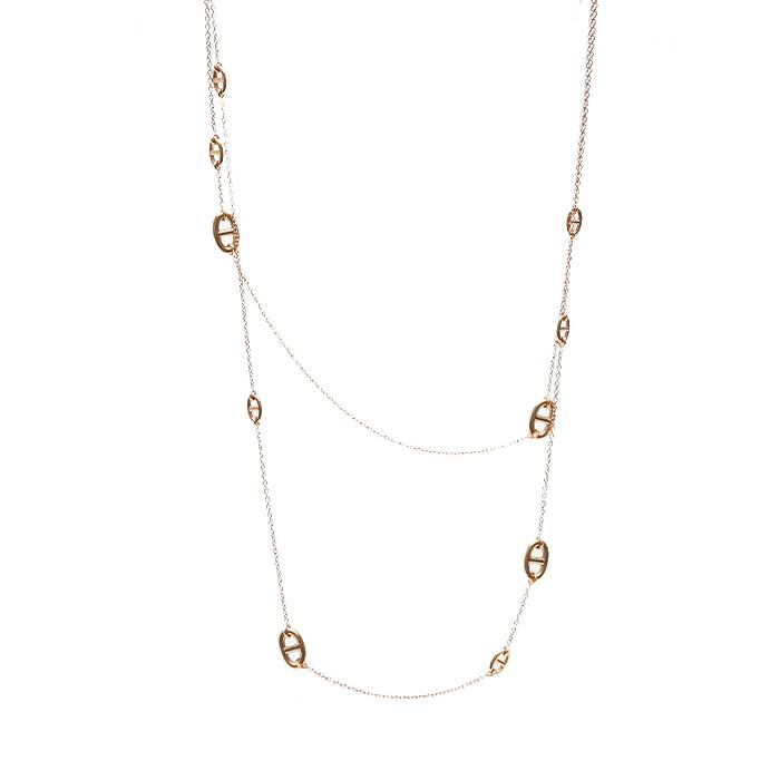 Collana lunga Hermès Farandole in oro rosa, composta di un'alternanza di maglie a catena d'ancora ovali traforate, il tutto sostenuto da una sottile catena in oro rosa.
