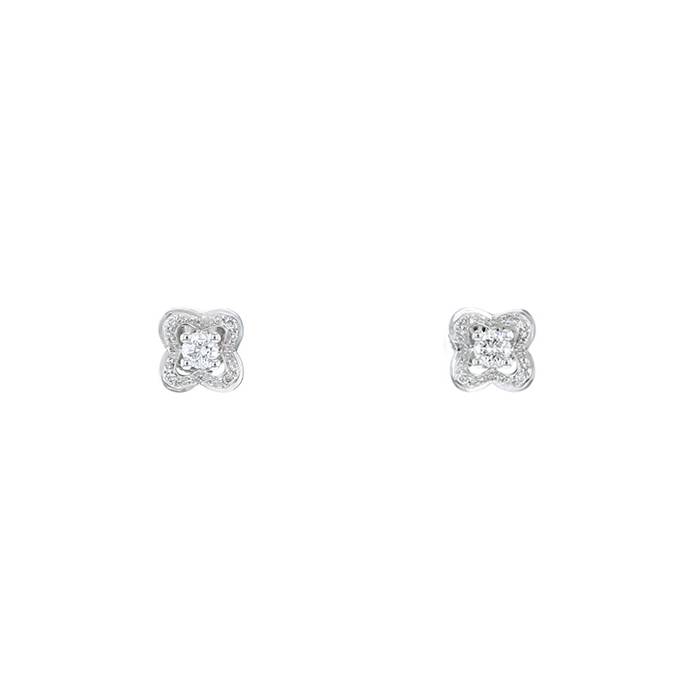 Orecchini a bottone Mauboussin Chance Of Love #1 in oro bianco e diamanti, con un elegante quadrifoglio quadrilobato delicatamente tempestato di diamanti con taglio a brillante, ornati al centro da un diamante con taglio a brillante del peso circa di 0.10 carati.