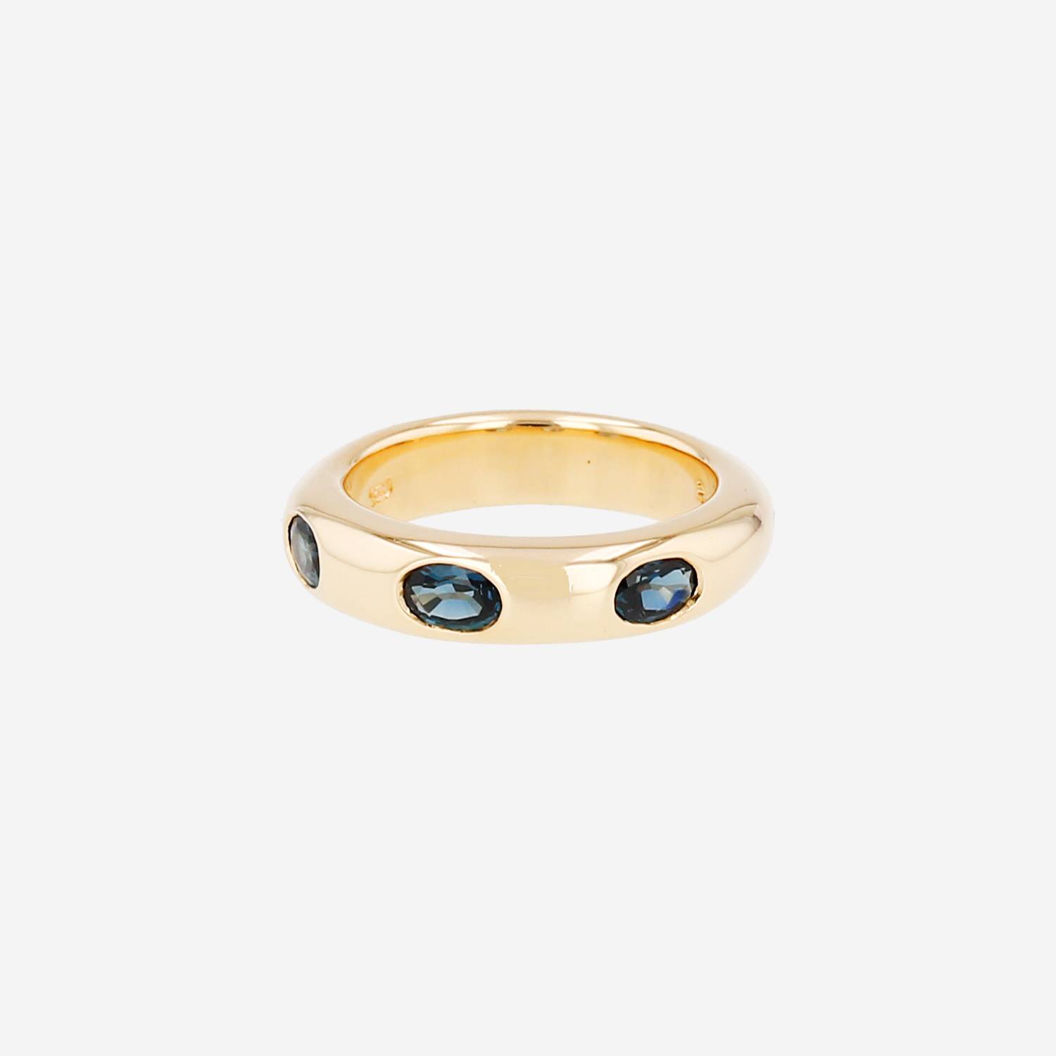 Anello Poiray in oro giallo e zaffiri, composto da un elegante profilo in oro giallo, ornato di belli zaffiri con taglio ovale.