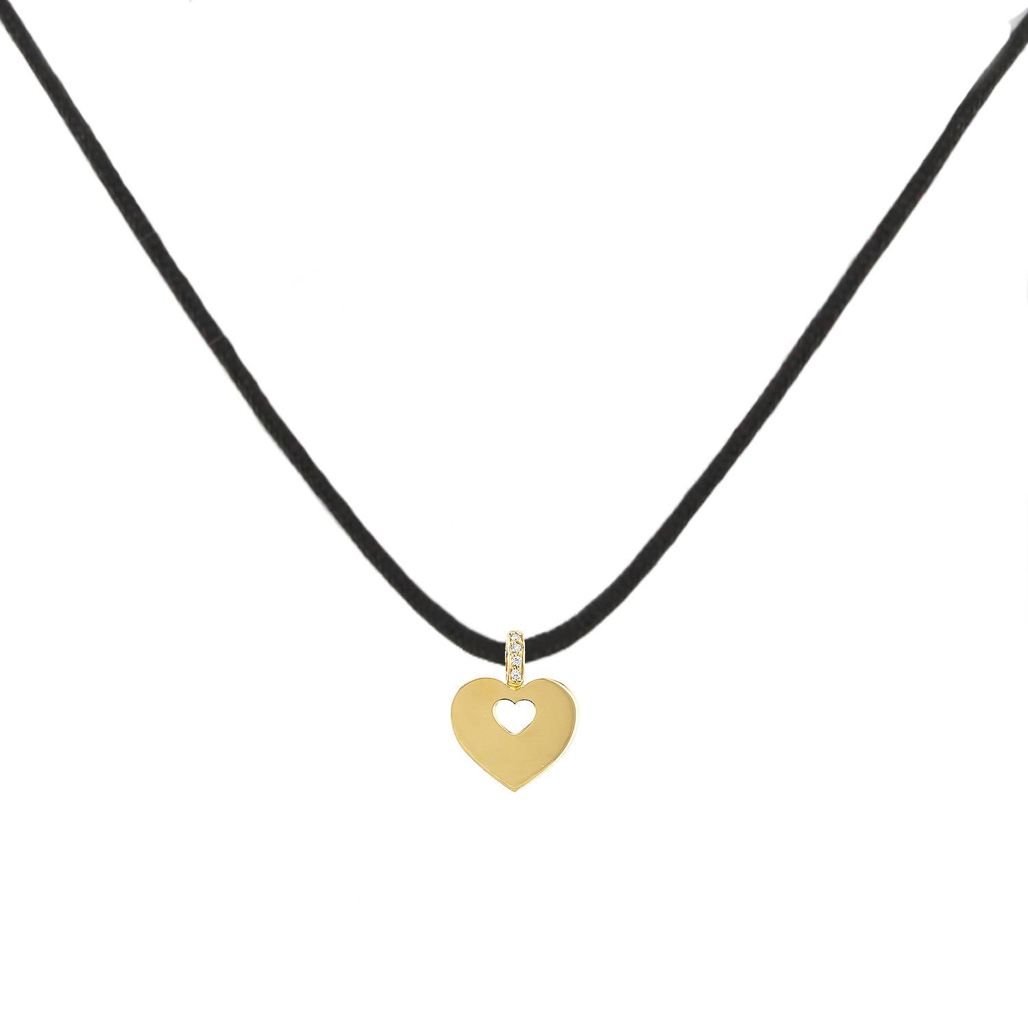 Bellissimo ciondolo Poiray Coeur Secret modello medio in oro giallo e diamanti, composto da un bellissimo cuore traforato in oro giallo delicatamente incastonato di diamanti con taglio a brillante.