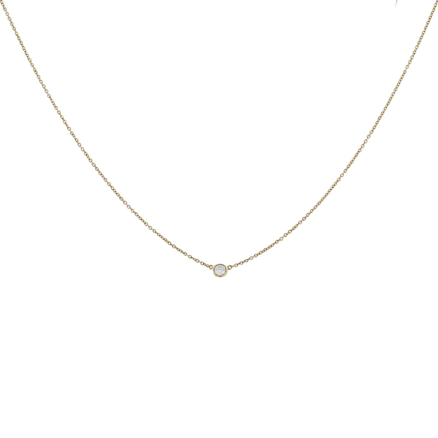 Collana Tiffany & Co Diamonds By The Yard in oro giallo e diamante, composta da una raffinata catena in oro giallo, che sostengono al centro un bellissimo diamante con taglio a brillante del peso totale 0.12 carati delicatamente incastonato chiuso.