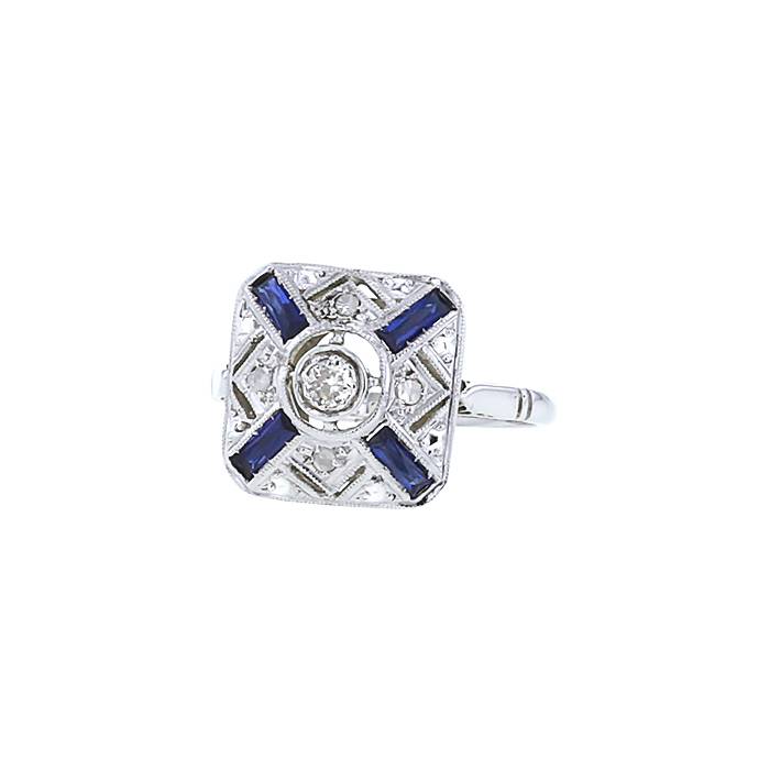 Anello Art Déco Vintage in platino, diamanti e zaffiri Ref Collector Square: 36 84 93