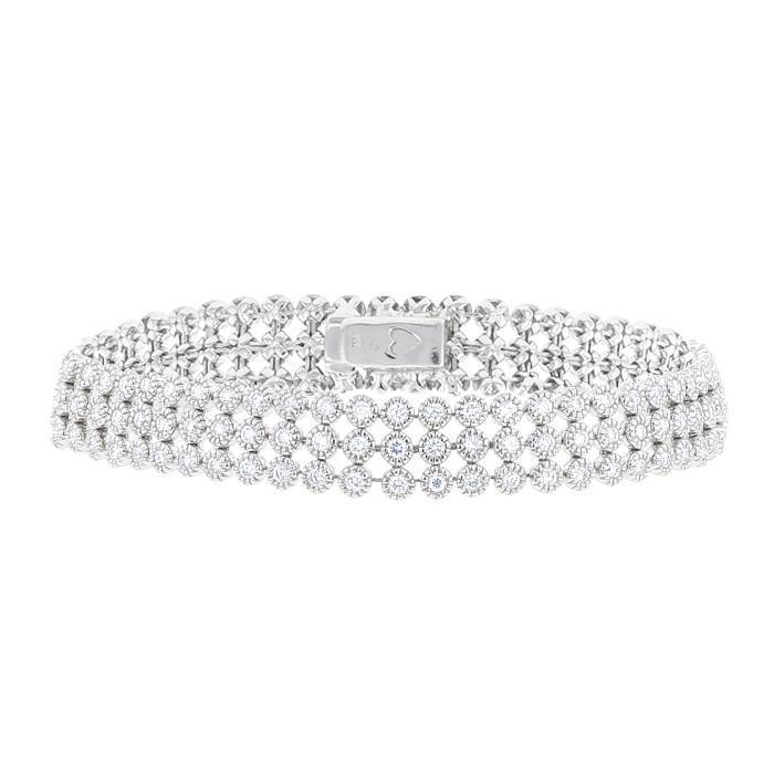 Bellissimo bracciale flessibile in oro bianco 14k e diamanti, composto da 3 file di diamanti con taglio a brillante da 4.25 carati totale, ornato undefined undefined in oro bianco 14k.