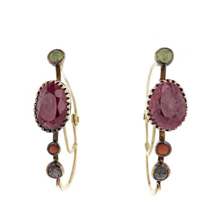 Orecchini Poissarde in oro rosa, hematite e peridoto e tormalina rosa Ref Collector Square: 32 12 21