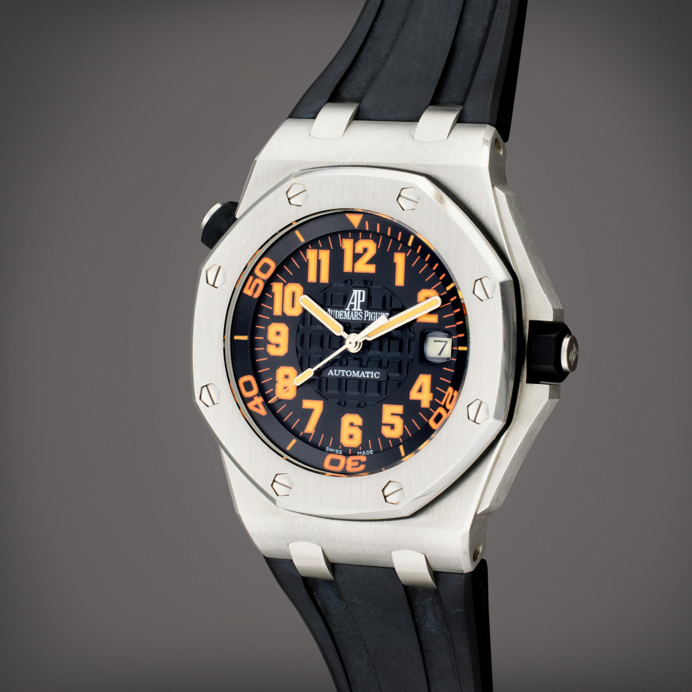 Connettiti per visualizzare i risultati successiviLeggi la descrizione dell'espertoAUDEMARS PIGUET, ROYAL OAK OFFSHORE - BOUTIQUE SPECIAL EDITION ORANGE SCUBA.STAINLESS STEEL SELF-WINDING DIVER'S WRISTWATCH WITH DATE DISPLAY, SPECIAL EDITION OF 300 PIECES