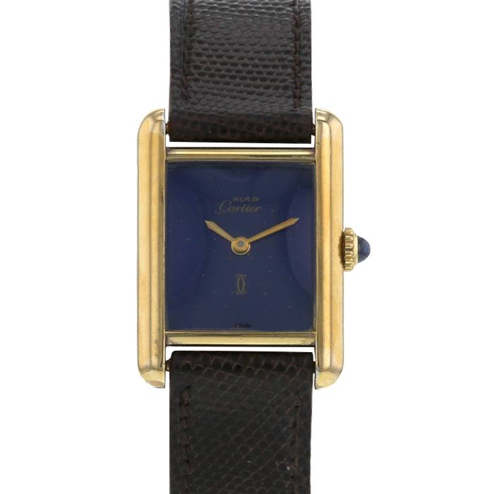 Orologio da polso Cartier Tank Must in vermeil. Cassa rettangolare in vermeil, fondo cassa avvitato, corona scanalata incastonata con un cabochon in zaffiro.