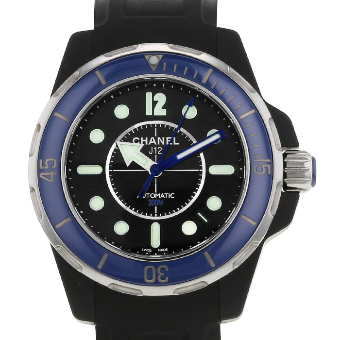 Orologio da polso Chanel J12 Marine in acciaio. Cassa rotonda in acciaio, fondo cassa avvitato, lunetta graduata girevole monodirezionale, corona a vite.
