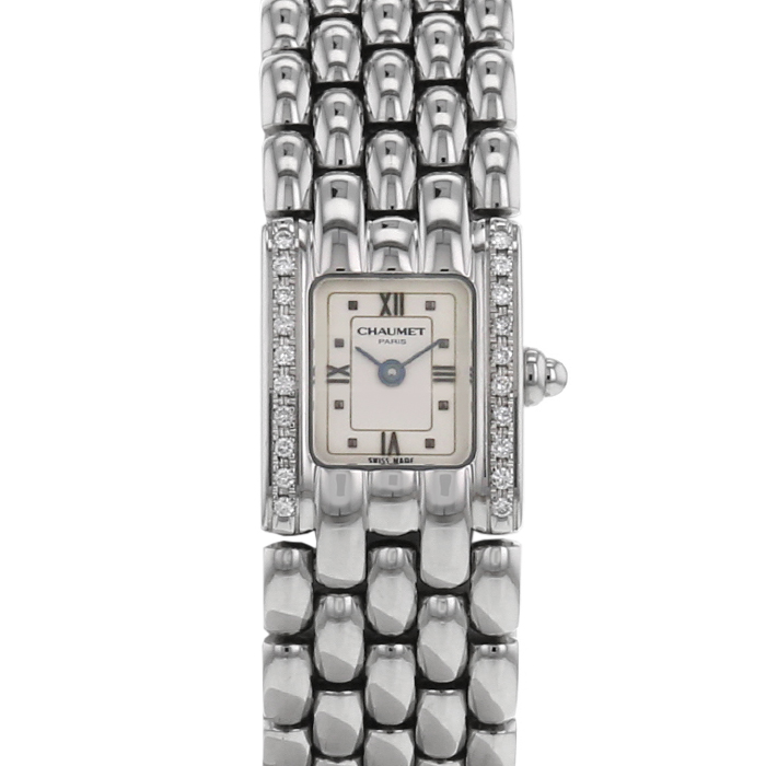 Bellissimo orologio da donna Chaumet Khesis in acciaio. Cassa rettangolare in acciaio diamantato, fondo cassa avvitato, corona per l'impostazione dell'ora.