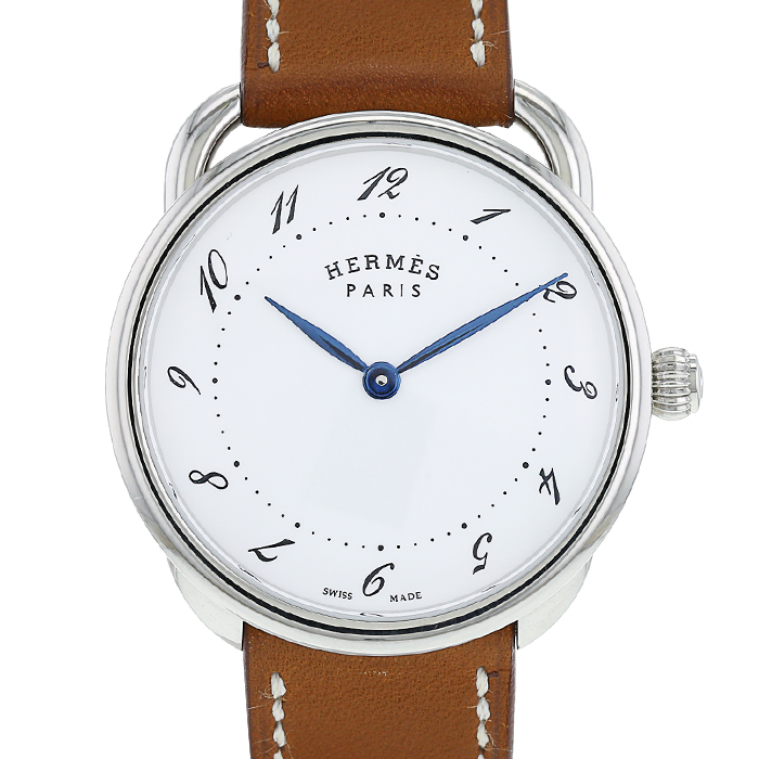 Orologio da polso Hermes Arceau in acciaio. Cassa rotonda in acciaio, fondo cassa avvitato, corona scanalata.