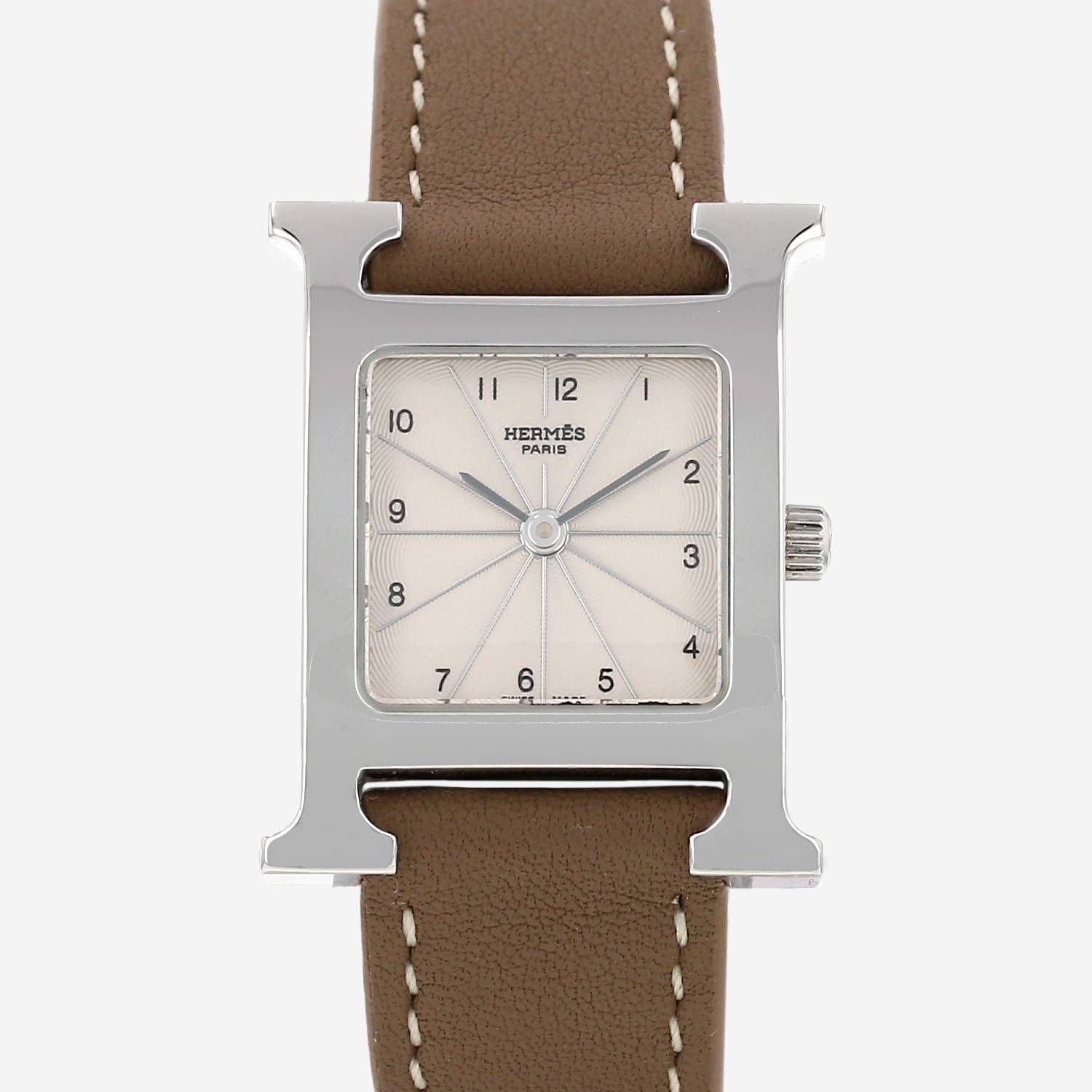 Orologio da polso Hermès Heure H in acciaio. Cassa a forma di H in acciaio, fondo cassa avvitato, corona scanalata.