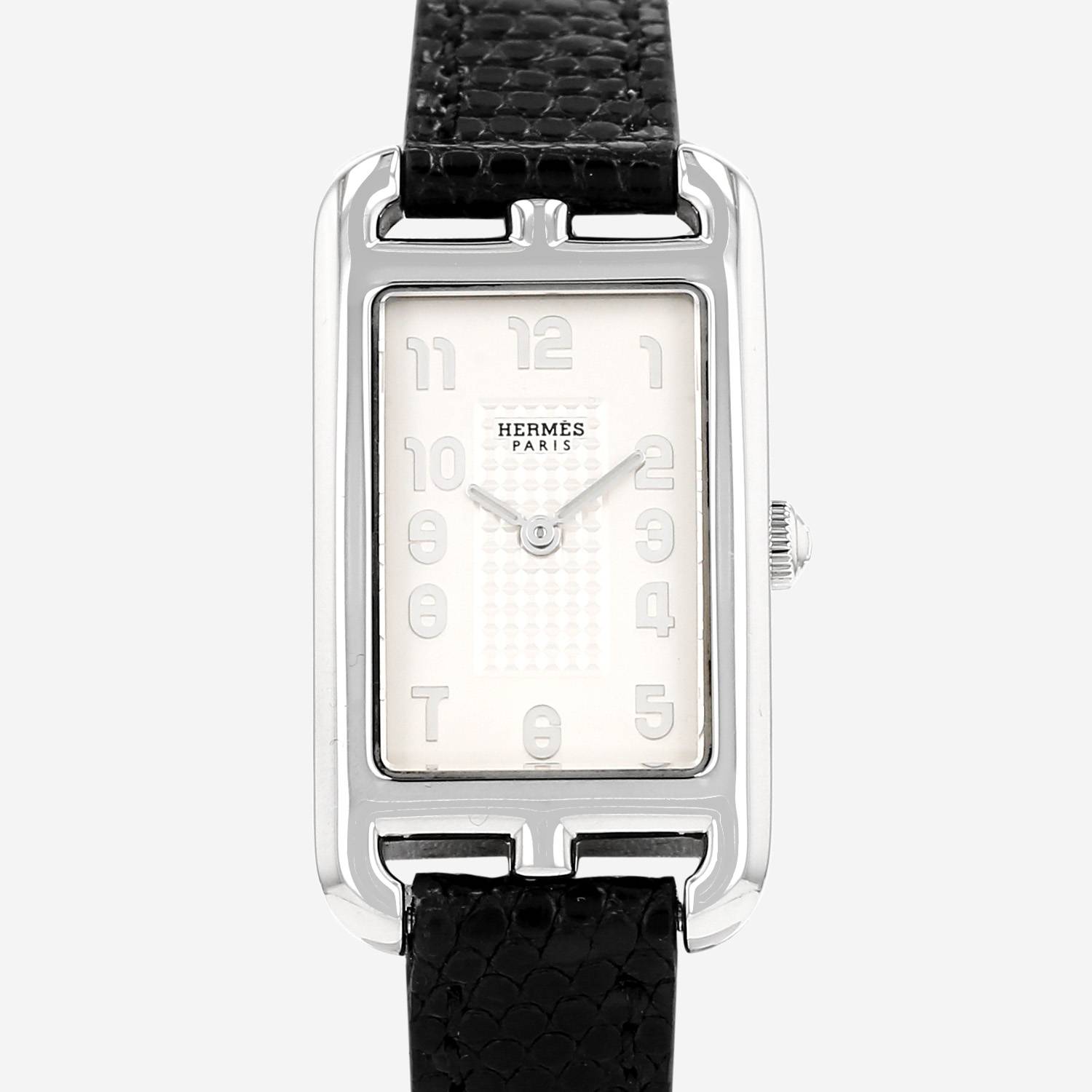 Orologio da polso Hermès Nantucket in acciaio. Cassa rettangolare in acciaio, fondo cassa avvitato, corona scanalata.