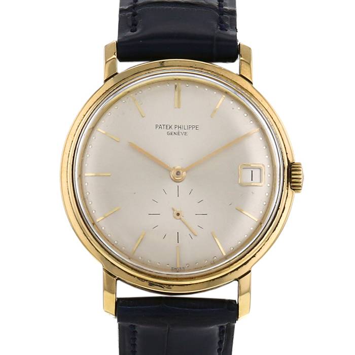 Orologio da polso Patek Philippe Calatrava in oro giallo. Cassa rotonda in oro giallo, fondo cassa avvitato, corona scanalata.