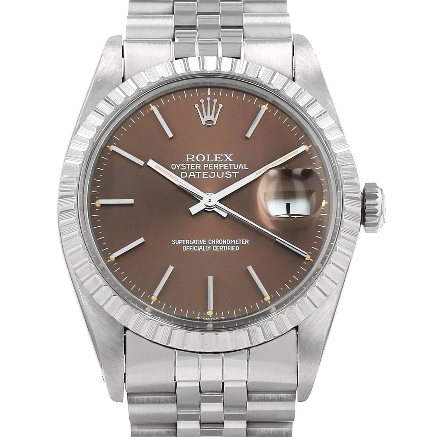 Orologio da polso Rolex Datejust in acciaio. Cassa rotonda in acciaio, fondo cassa avvitato, lunetta zigrinata, corona a vite.