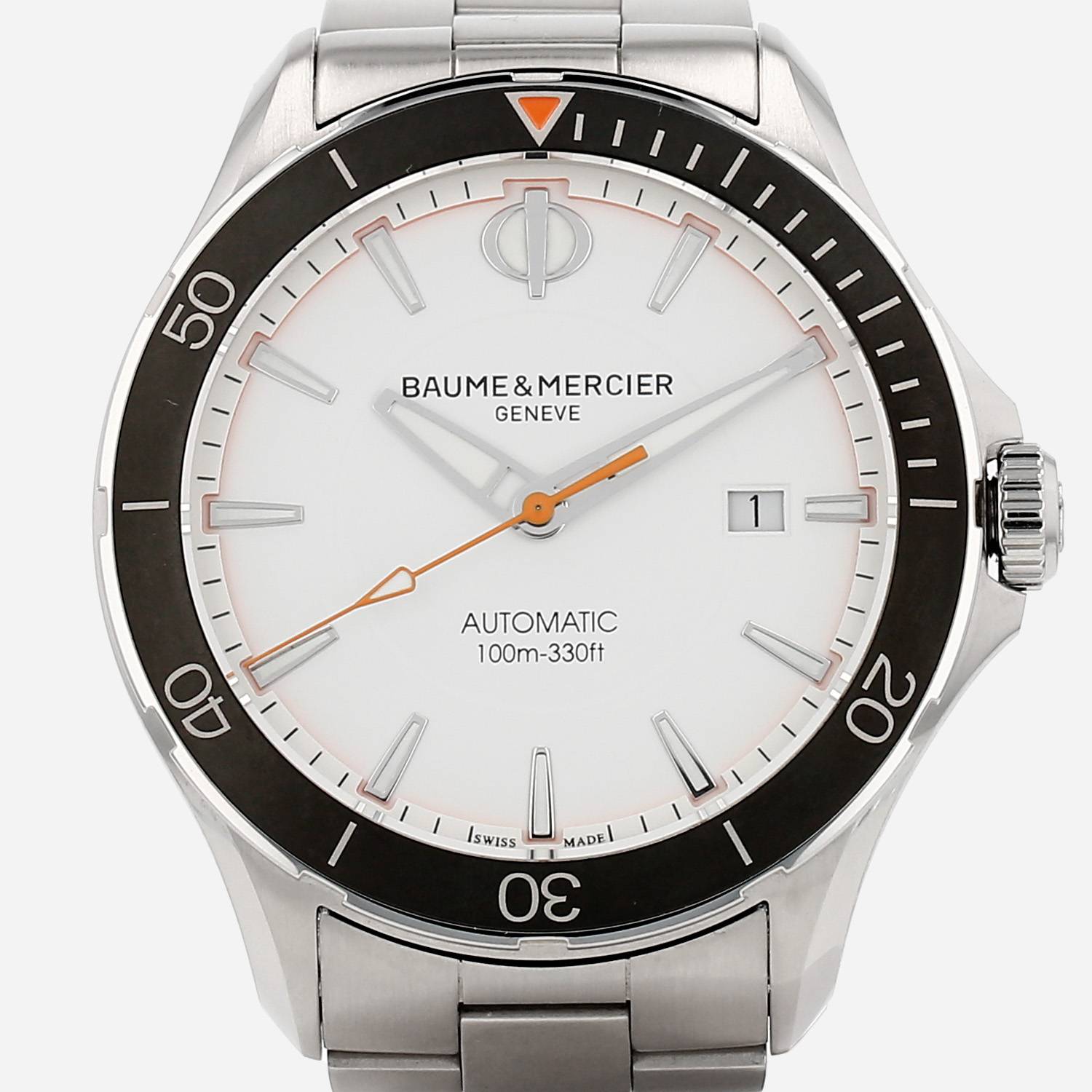 Montre bracelet Baume & Mercier Clifton en acier. Boitier rond en acier, fond clippé, lunette graduée tournante unidirectionnelle, couronne vissée.