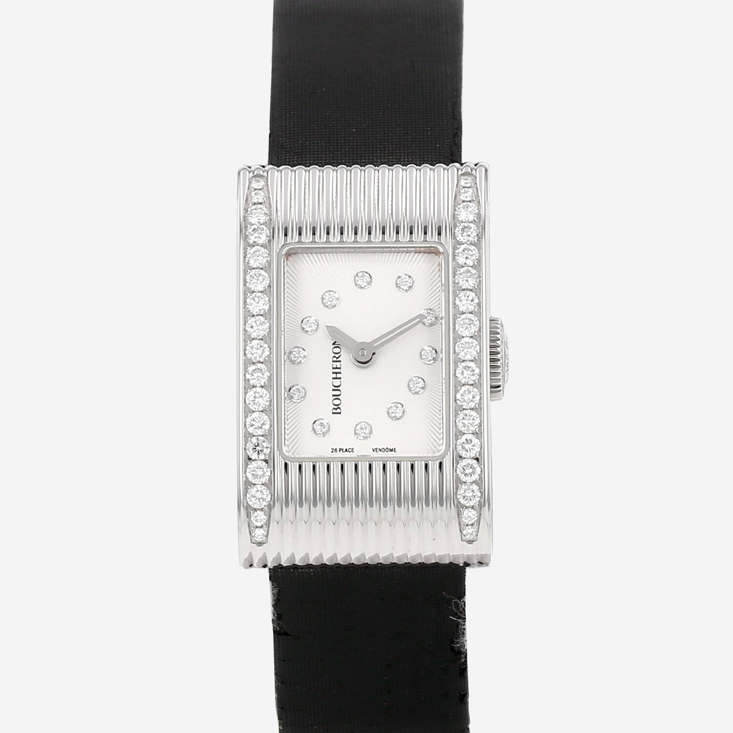 Montre bracelet Boucheron Reflet en acier. Boitier rectangulaire en acier diamanté à godron , fond vissé, couronne cannelée.