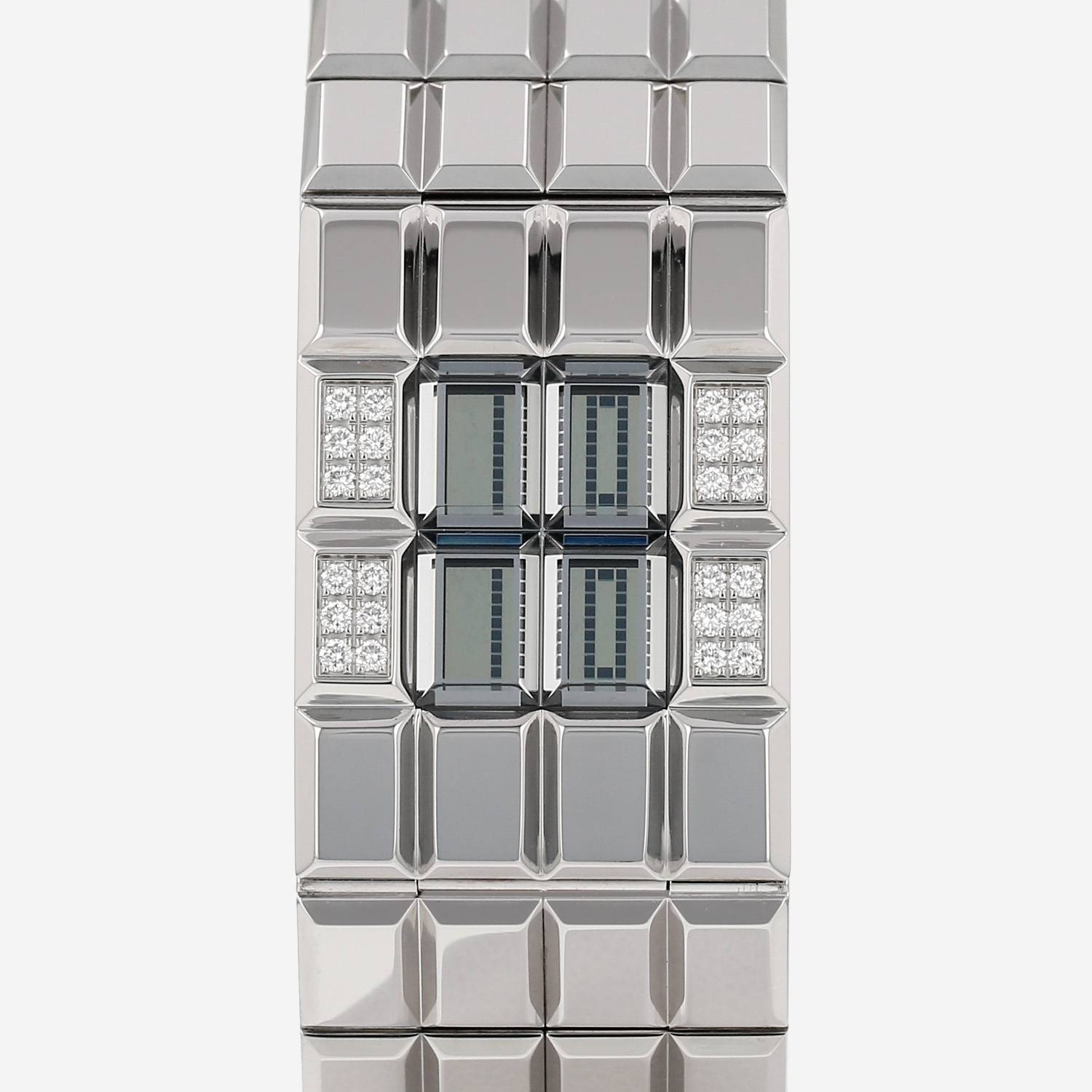 Montre bracelet Chanel Chocolat en acier. Boitier rectangulaire en acier diamanté avec verre facetté, fond vissé, couronne de remontoir intégré au boîtier.