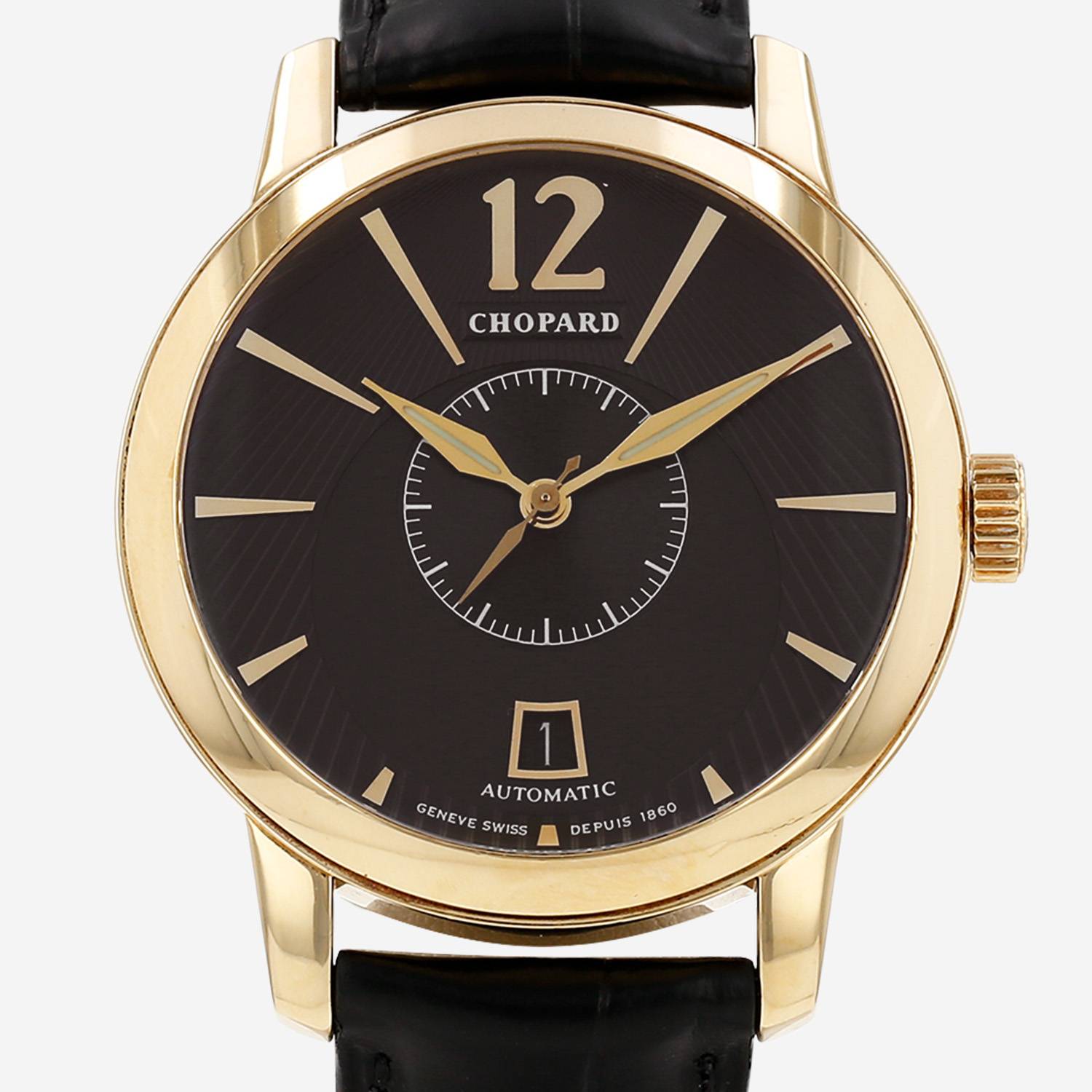 - Cadran guilloché marron, mouvement automatique.