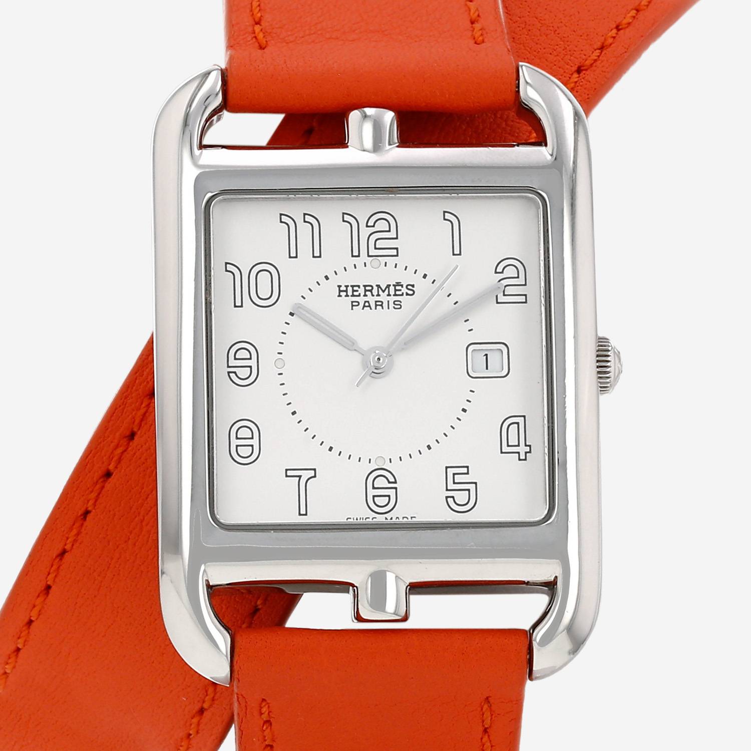 Montre bracelet Hermès Cape Cod en acier. Boitier rectangulaire en acier, fond vissé, couronne cannelée.