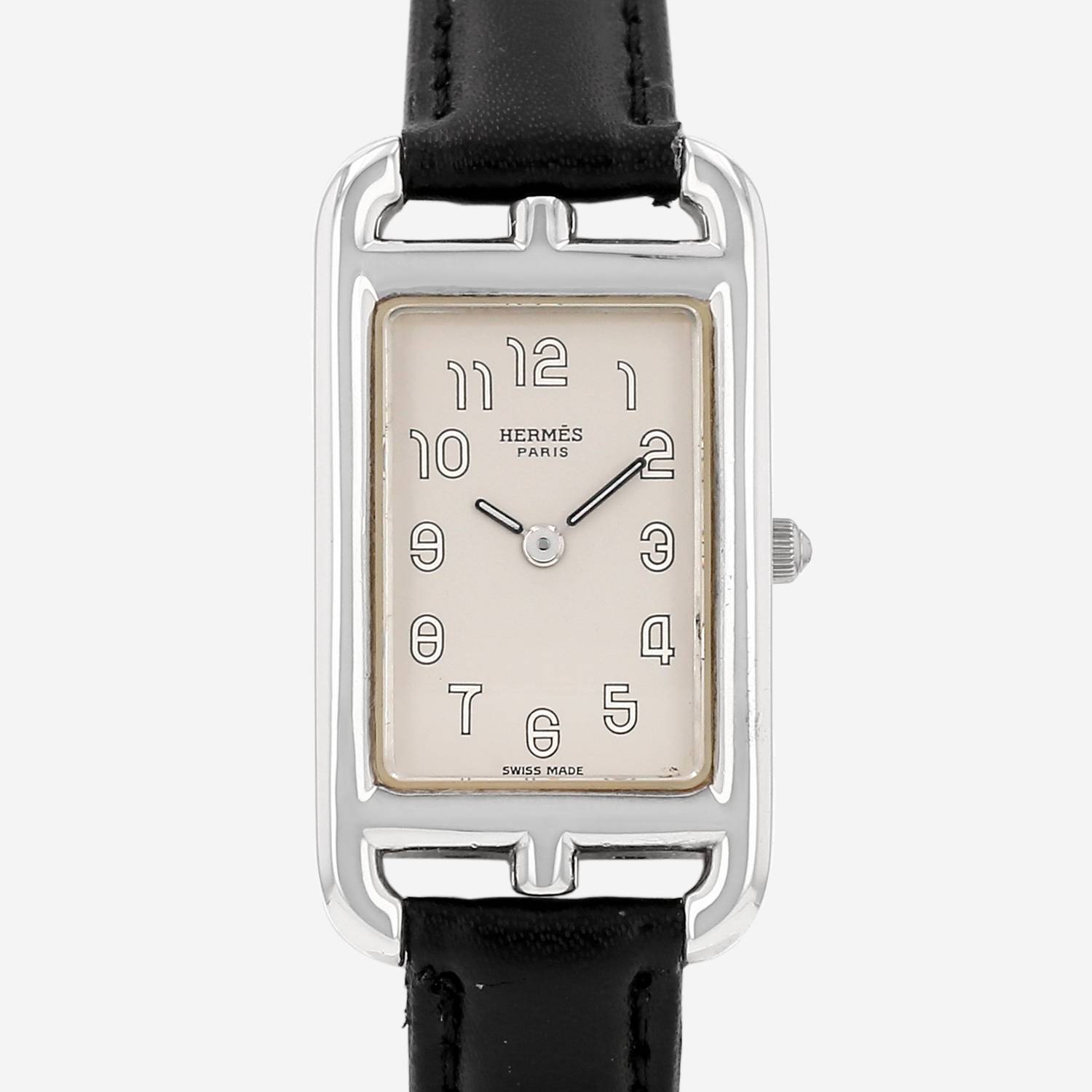 Montre bracelet Hermès Cape Cod en argent. Boitier rectangulaire en argent, fond vissé, couronne cannelée.