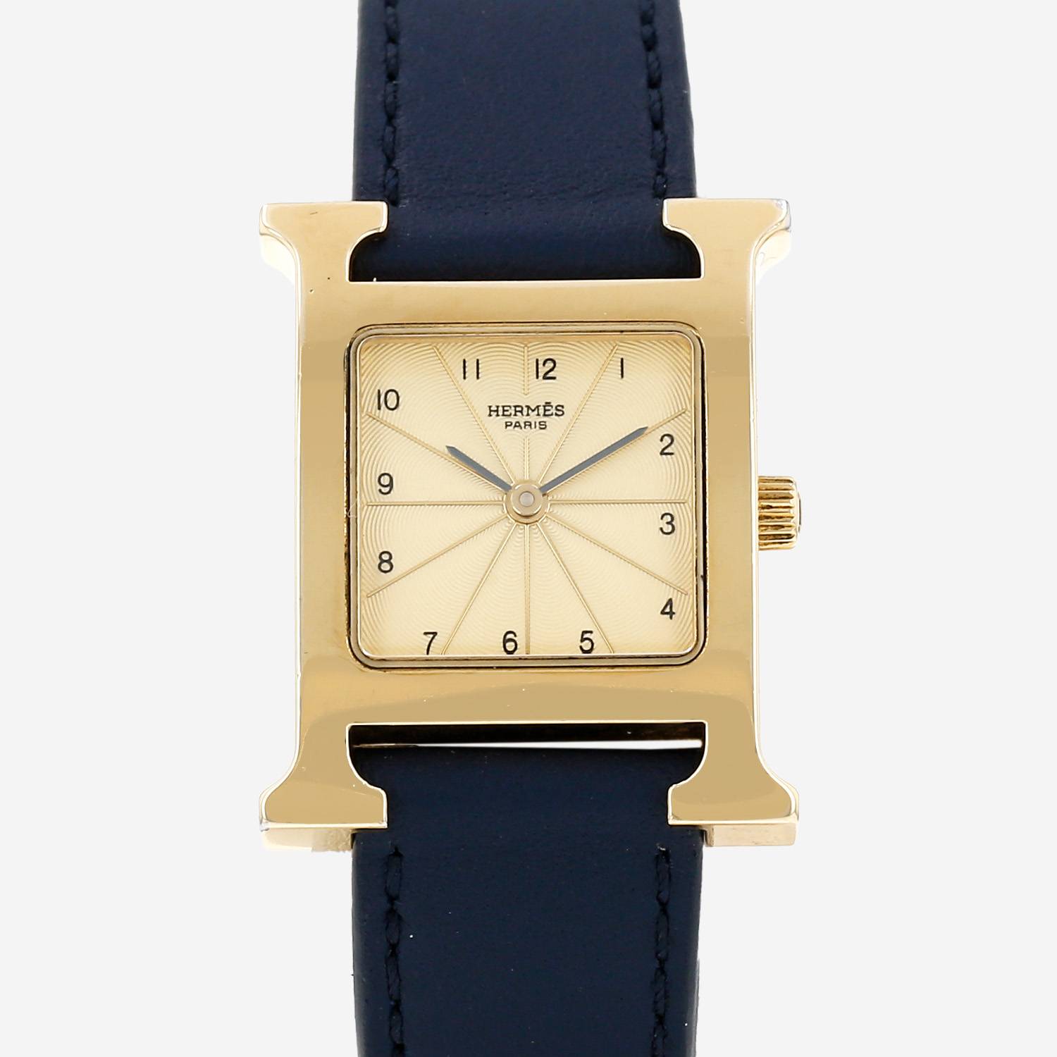 Montre bracelet Hermès Heure H en plaqué or et acier. Boitier de forme h en plaqué or et acier, fond vissé, couronne cannelée.