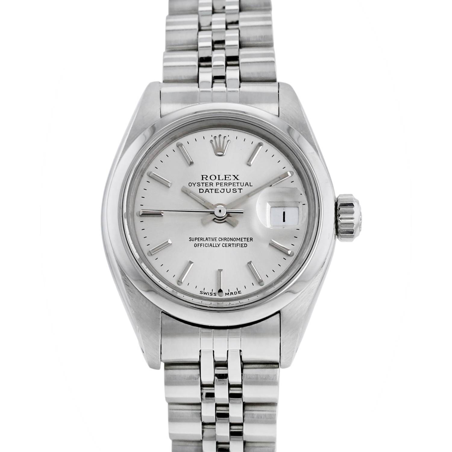 Montre bracelet Rolex Datejust Lady en acier. Boitier rond en acier, fond vissé, lunette lisse en acier, couronne vissée.