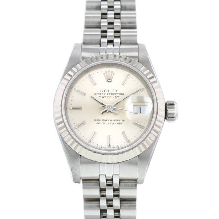 Montre bracelet Rolex Datejust Lady en or et acier. Boitier rond en acier, fond vissé, lunette striée en or blanc, couronne vissée.