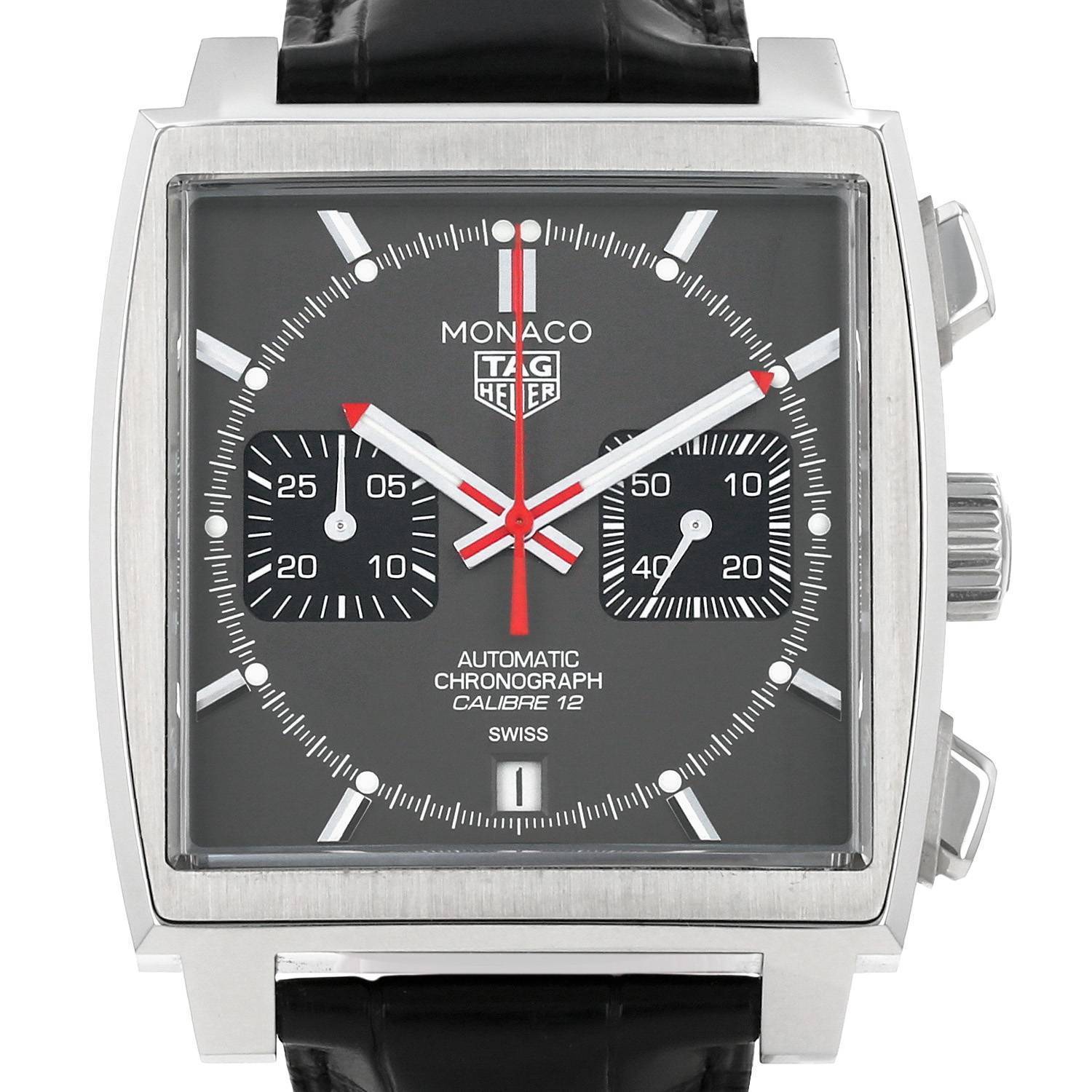Dernier modèle Monaco Calibre 12 doté d'un superbe cadran gris en ruthénium brossé vertical. Dernière édition de la Monaco Calibre 12, ce modèle n"existe qu"à 1000 exemplaires.