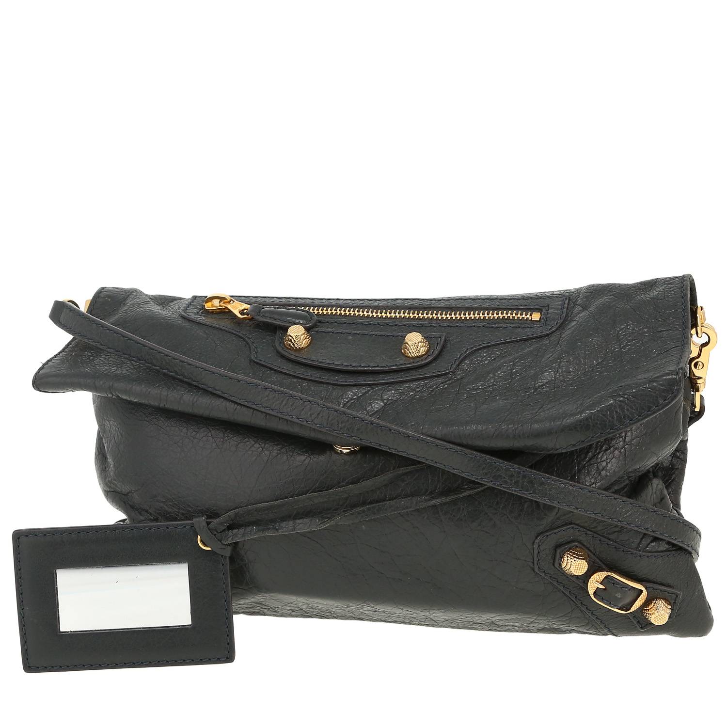 Magnifique sac bandoulière Balenciaga en cuir gris, garniture en métal doré, une anse amovible en cuir gris permettant un porté main ou épaule ou bandoulière.
