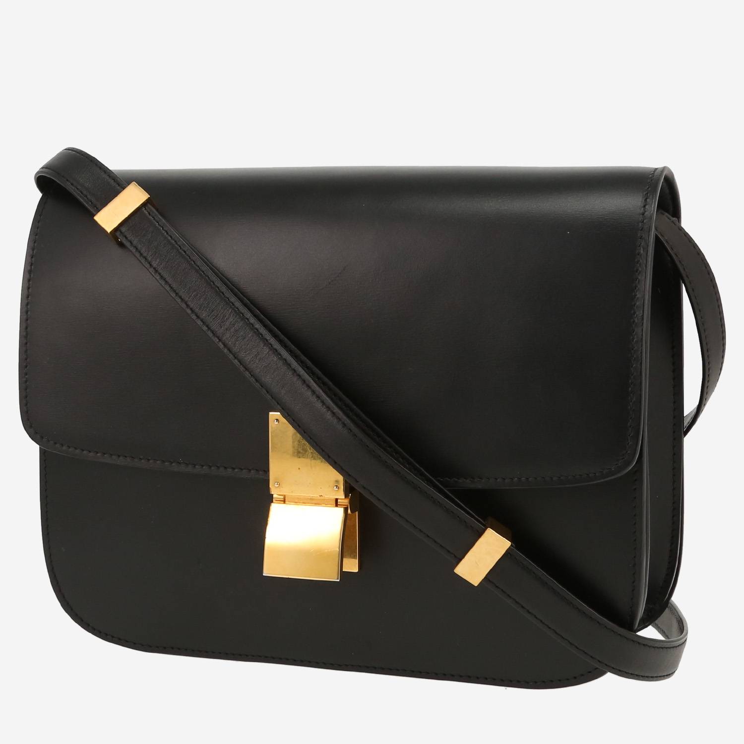 Magnifique sac à main Celine Classic Box en cuir noir, garniture en métal doré, une anse en cuir noir permettant un porté main ou épaule ou bandoulière.