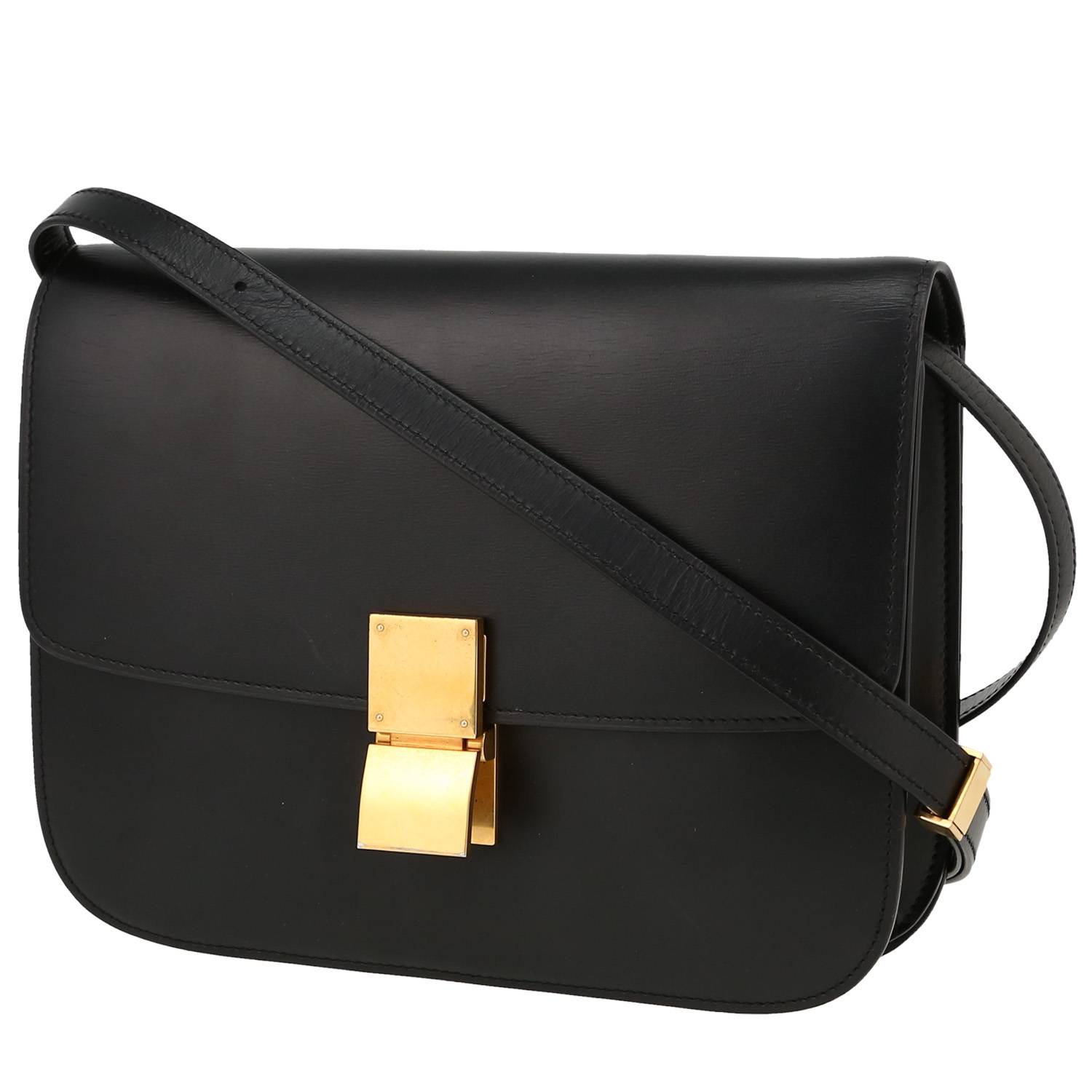 Sublime sac bandoulière Celine Classic Box en cuir box noir, garniture en métal doré, une anse transformable en cuir noir permettant un porté main ou épaule ou bandoulière.