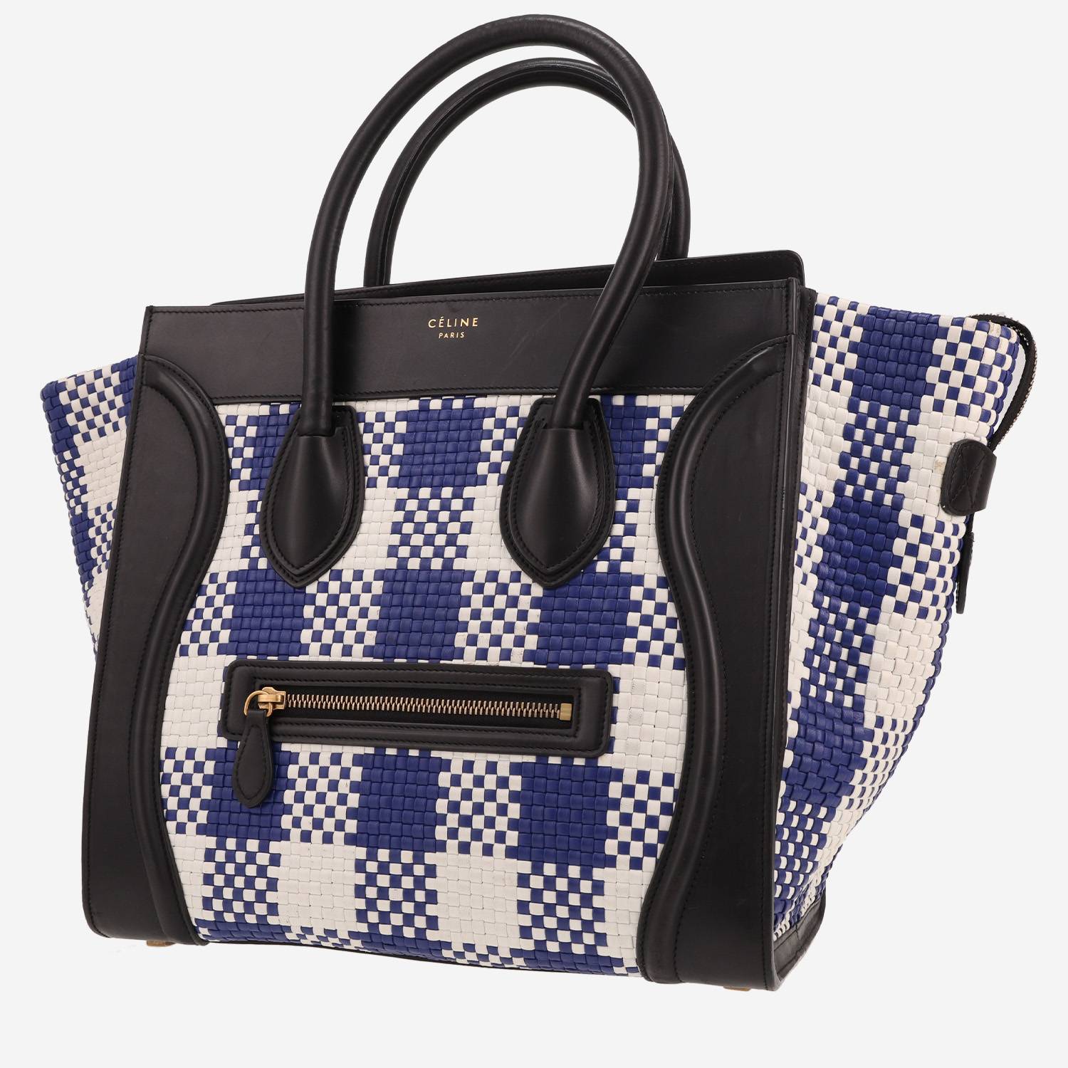 Sac à main Celine Luggage en cuir tressé bleu et blanc et cuir noir Ref Collector Square : 43 13 54