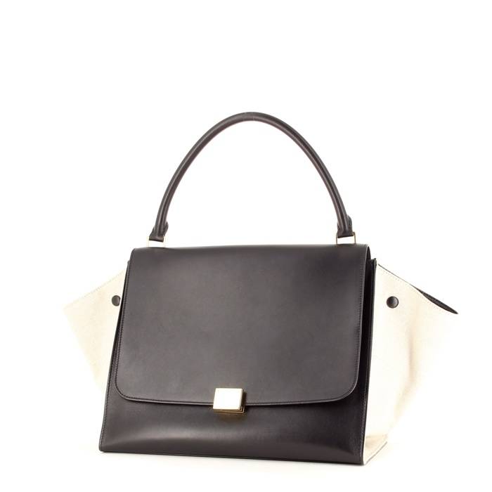 Celine Trapèze en cuir noir et toile beige Ref Collector Square : 21 64 71