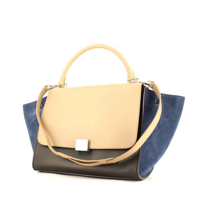 Sac Celine Trapeze moyen modèle en cuir gris et daim beige Ref Collector Square : 32 44 98