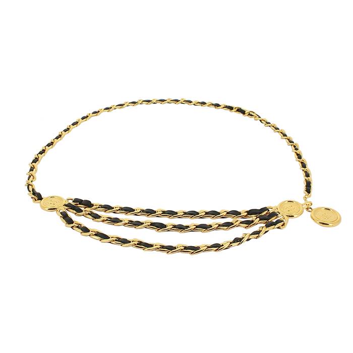 Chanel Ceinture en métal doré et cuir noir Ref Collector Square : 27 80 43