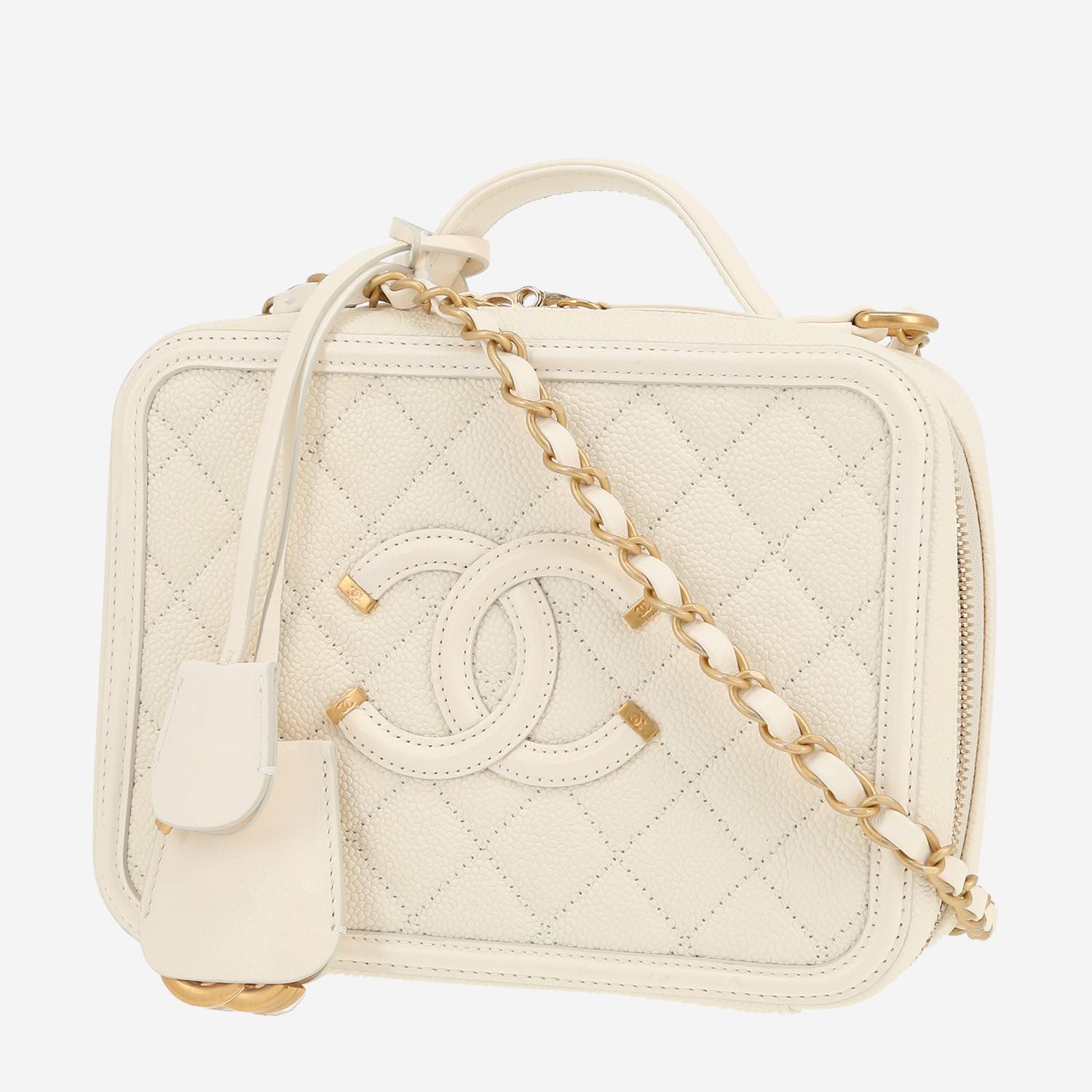 Sac bandoulière Chanel Filigree Vanity Case en cuir grainé matelassé blanc Ref Collector Square : 42 80 92