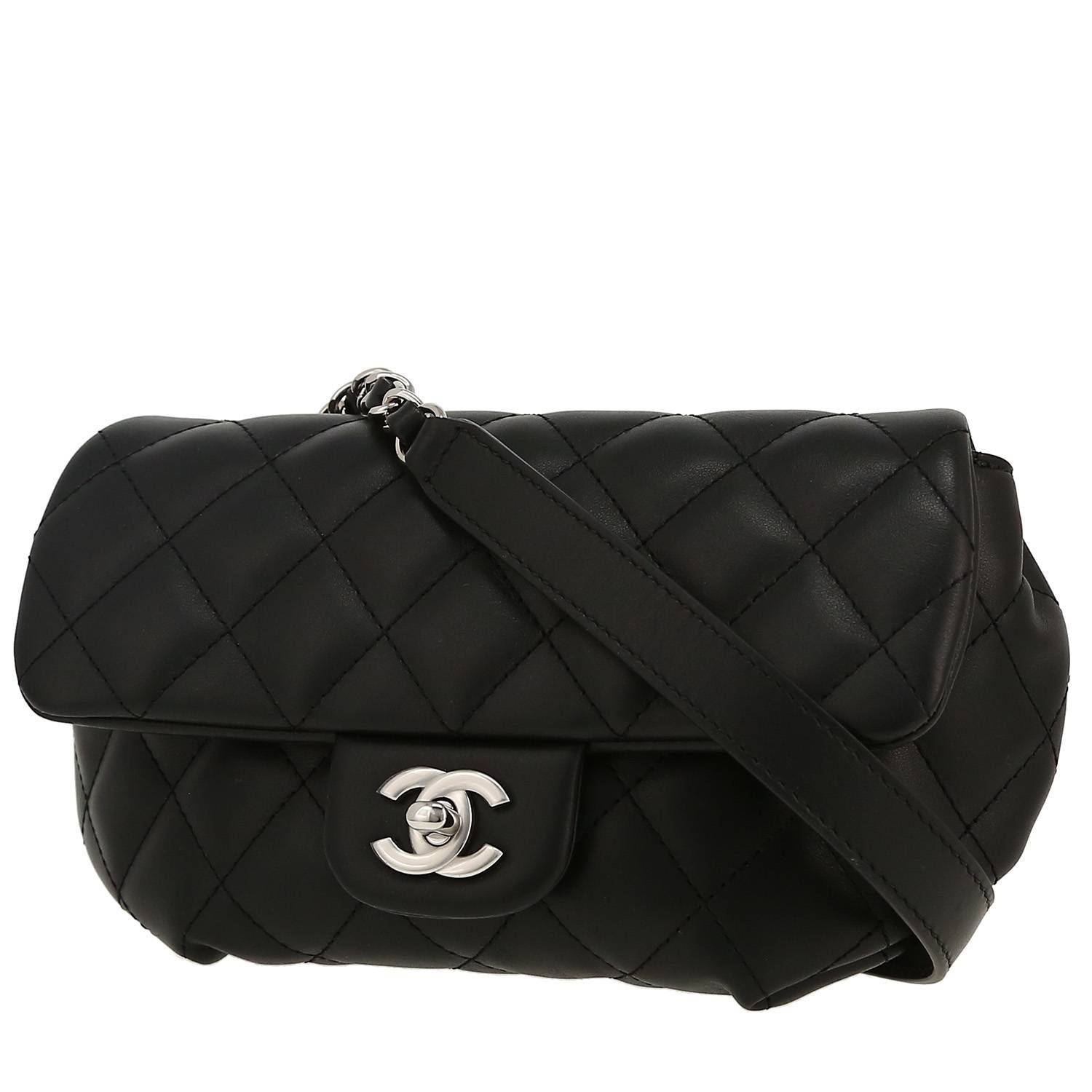Pochette-ceinture Chanel Pochette ceinture en cuir matelassé noir Ref Collector Square : 42 02 24