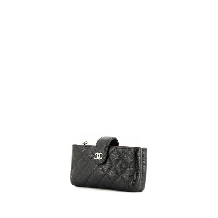 Porte-monnaie Chanel en cuir grainé matelassé noir Ref Collector Square : 32 33 26