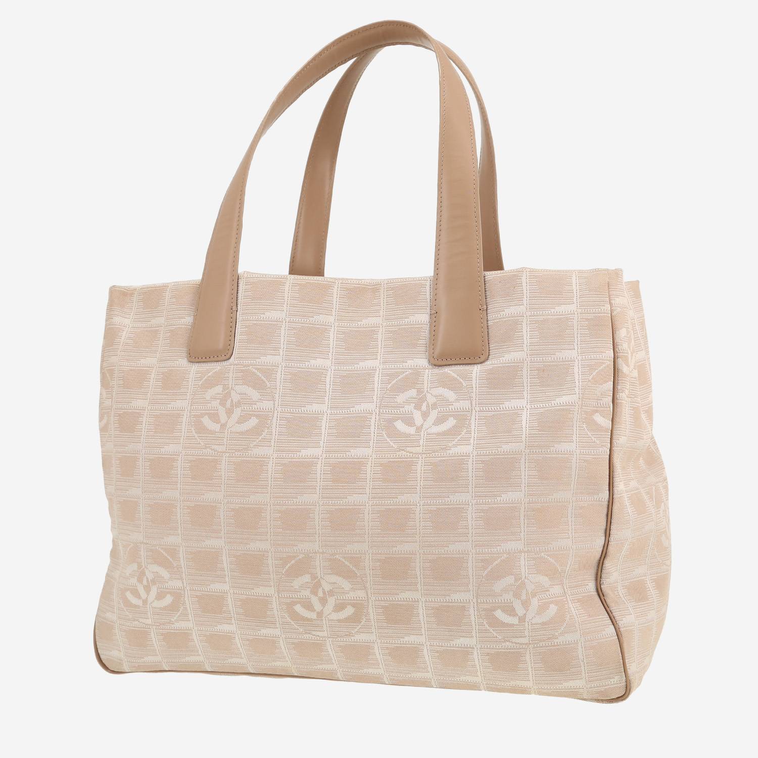 Magnifique sac à main Chanel en toile beige et cuir beige, garniture en métal doré, double poignée en cuir beige permettant un porté main.