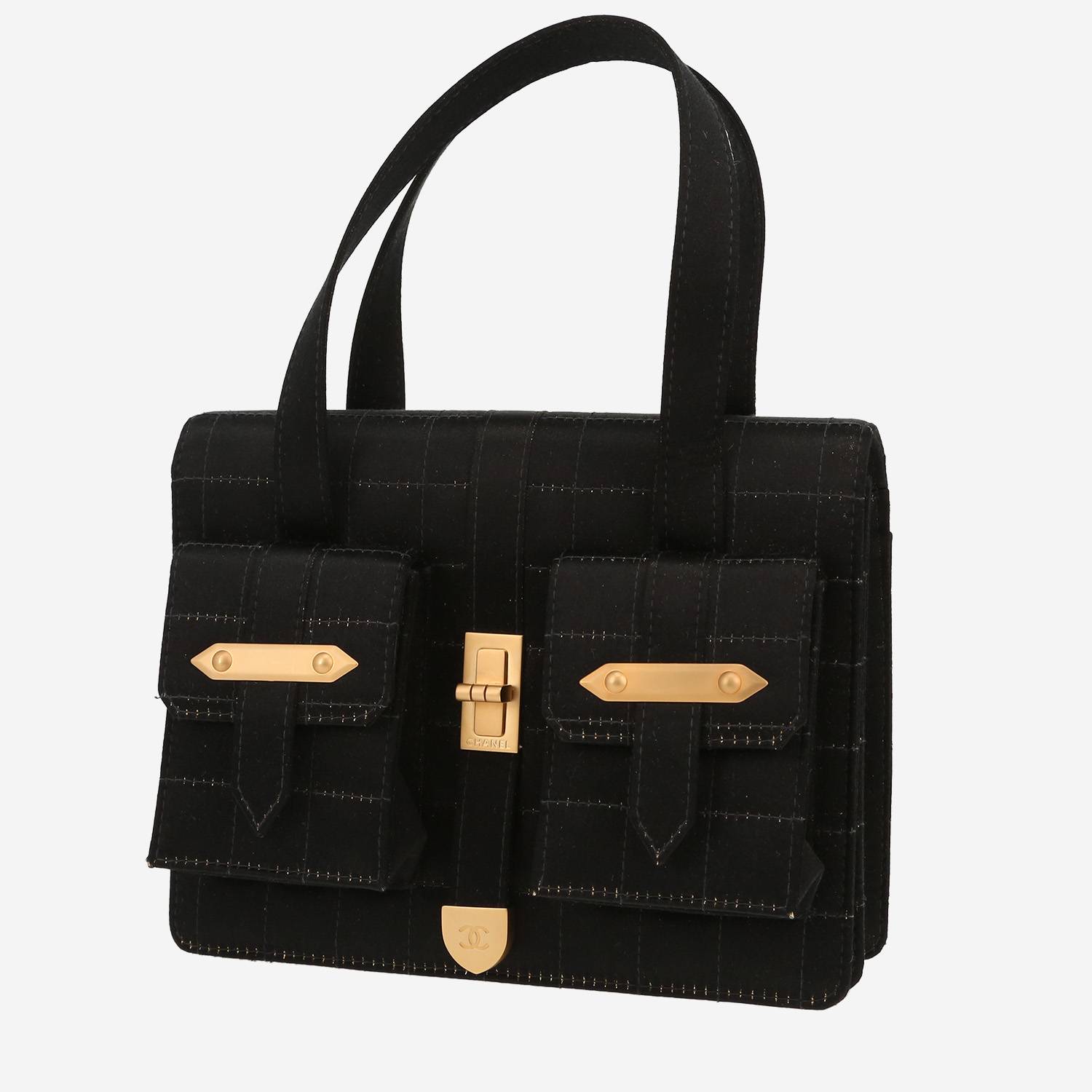 Amusant sac à main Chanel en toile noir, garniture en métal doré, double poignée en toile noire permettant un porté main.