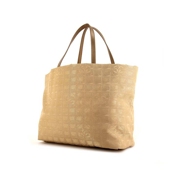 Pratique sac cabas Chanel en toile dorée et cuir doré, garniture en métal doré, double poignée en cuir doré permettant un porté main ou épaule.