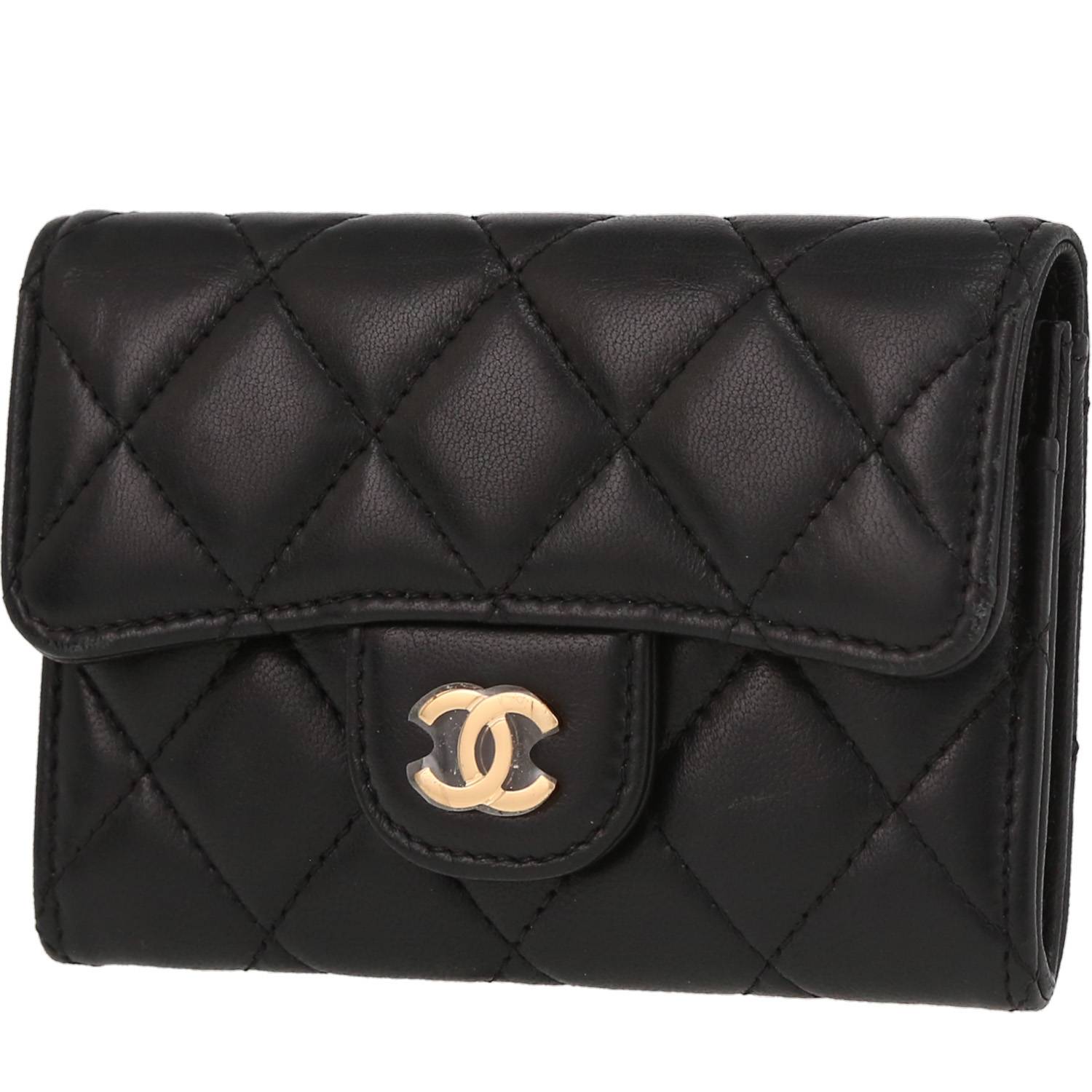 Porte-monnaie Chanel Timeless en cuir matelassé noir Ref Collector Square : 39 46 41