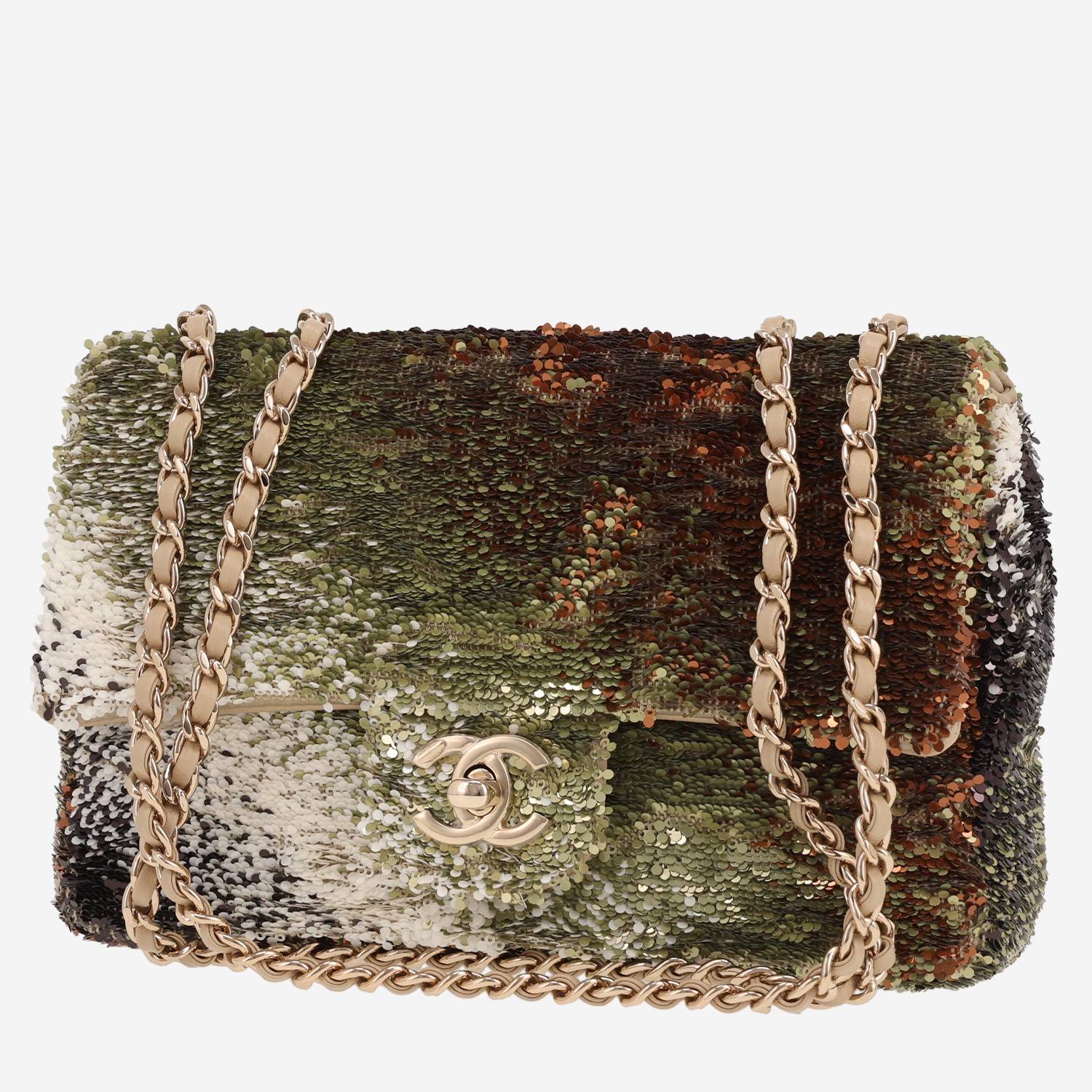 Sac bandoulière Chanel Timeless Petit en sequin dégradé vert Ref Collector Square : 42 93 06