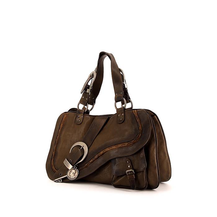 Incontournable sac porté épaule ou main Dior Gaucho en cuir marron et jonc marron-caramel, garniture en métal argenté mate, double anse ajustable en cuir marron permettant un porté main ou épaule.