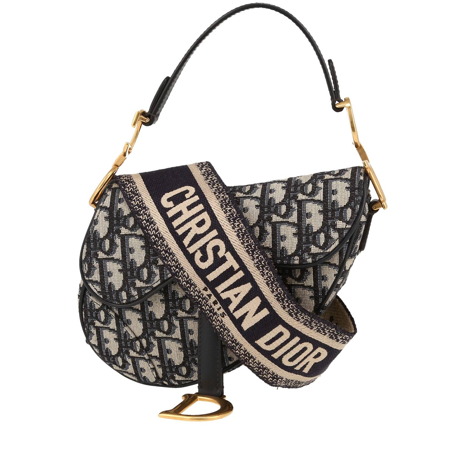 Sublime sac à main Dior Saddle mini en toile monogram Oblique bleu-marine et cuir bleu-marine, garniture en métal doré, poignée simple en cuir bleu- électrique, anse bandoulière amovible en toile bleu-marine permettant un porté main ou épaule ou bandoulière.